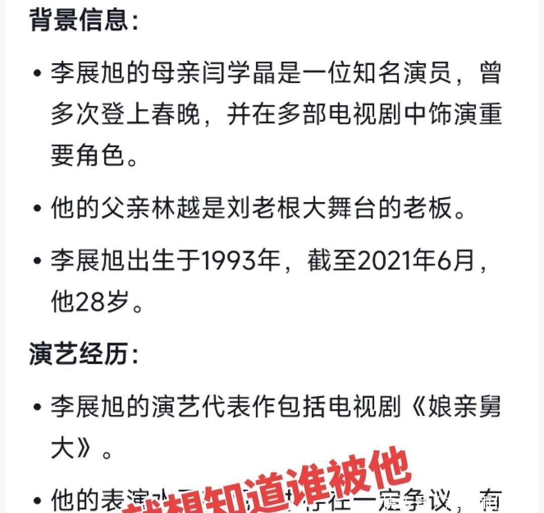 有的发现她的儿子有两个名字,还有一个叫李展旭,并且以这个名字出演电视剧,更是让人产生了猜测。至于原因,可能是曾用名或者艺名,不过有的甚至是认为他顶替了对方,如果是真的,那事情就显得更大了。